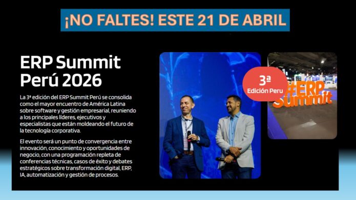Grupo Portal ERP anuncia la tercera edición del ERP Summit Perú para el 21 de abril del 2026 en el Lima Convention Center (LCC). En un contexto donde la inteligencia artificial (IA) se consolida como la principal prioridad de inversión empresarial a nivel global, el ERP Summit emerge como el