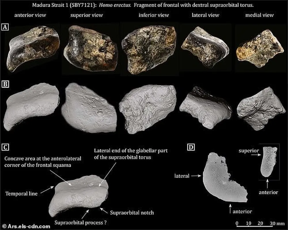 Además, se hallaron dos fragmentos de cráneo humano, uno frontal y otro parietal. Según Berghuis, su estructura “coincide con los fósiles de Homo erectos hallados en Sambungmacan”.