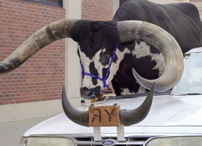VIDEO: Detienen a un hombre por llevar a un gran toro en el asiento de copiloto.