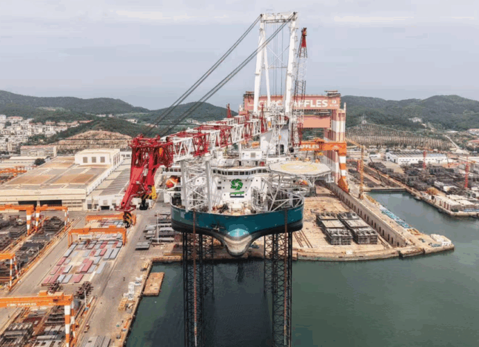 Único en el mundo: China lanza primer buque para instalar turbinas eólicas gigantes con innovador sistema de propulsión.