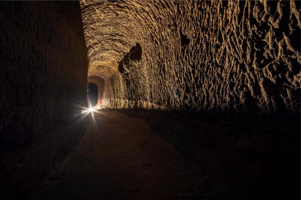 Las investigaciones más detalladas indican que muchos de estos conductos superan holgadamente los 500 metros de longitud y alcanzan alturas cercanas a los dos metros. En algunos tramos, una persona adulta puede avanzar erguida sin dificultad. Todo esto atraviesa materiales duros: areniscas compactas, arenas consolidadas e incluso rocas volcánicas alteradas. Excavarlos hoy requeriría maquinaria pesada.