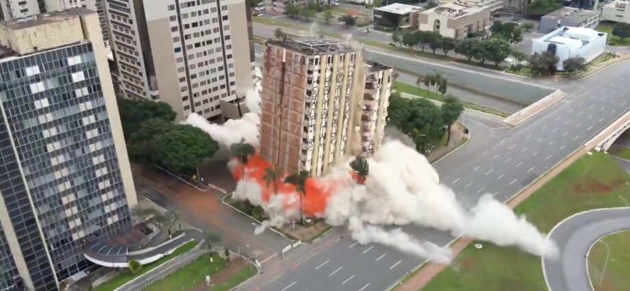 El Torre Palace, uno de los hoteles más emblemáticos de Brasil, fue derribado el pasado fin de semana en Brasilia, mediante una demolición controlada en la que utilizaron 165 kilos de explosivos. El icónico hotel fue inaugurado en la década de 1970 y funcionó hasta 2013. Desde su cierre, el edificio estuvo abandonado y fue objeto de disputas legales entre familiares.