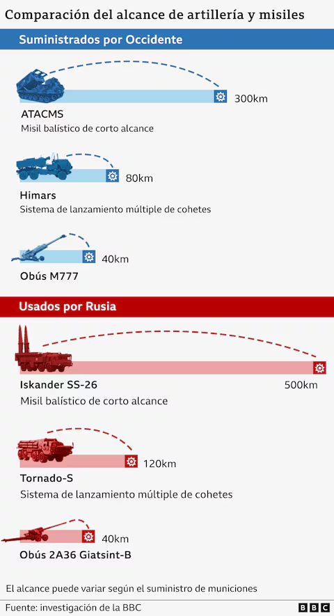 Imagen: Gráfico que compara el alcance de las armas ucranianas y las rusas