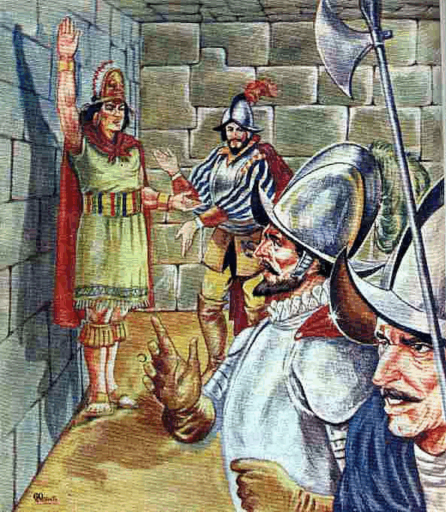 Imagen: Escena donde Atahualpa ofrece oro y plata a cambio de su liberación.